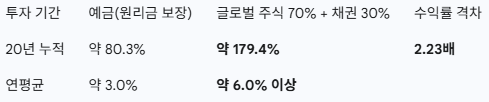 원금 보장 상품에만 의존하는 것이 얼마나 큰 손해를 초래하는지는 장기 시뮬레이션을 통해 명확히 드러납니다.